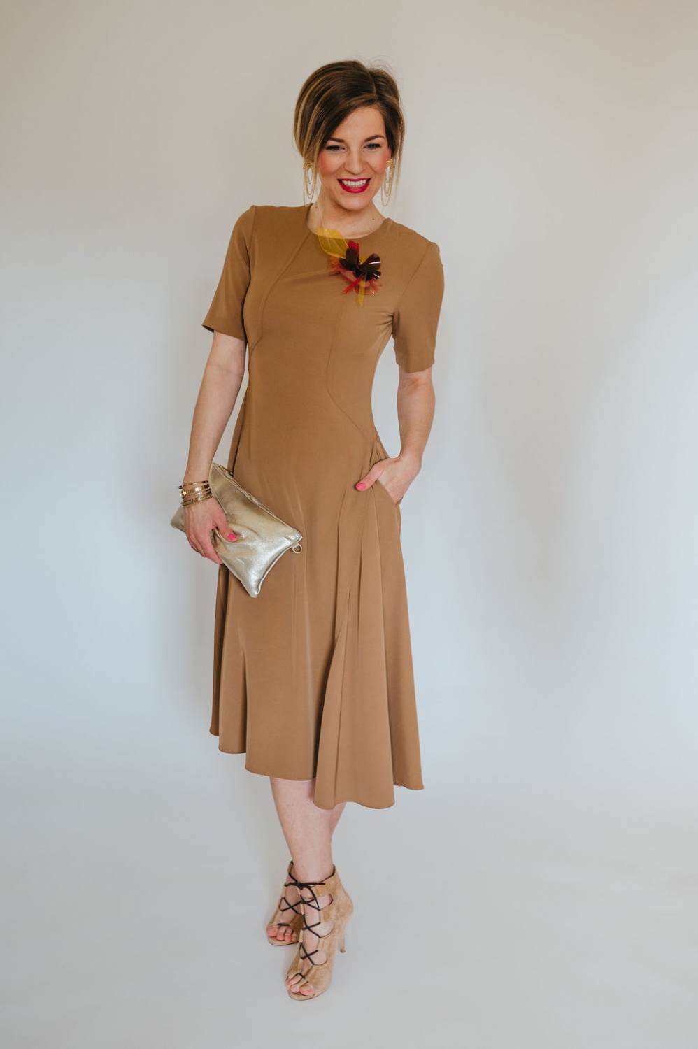 Karcsúsított, zsebes midi ruha